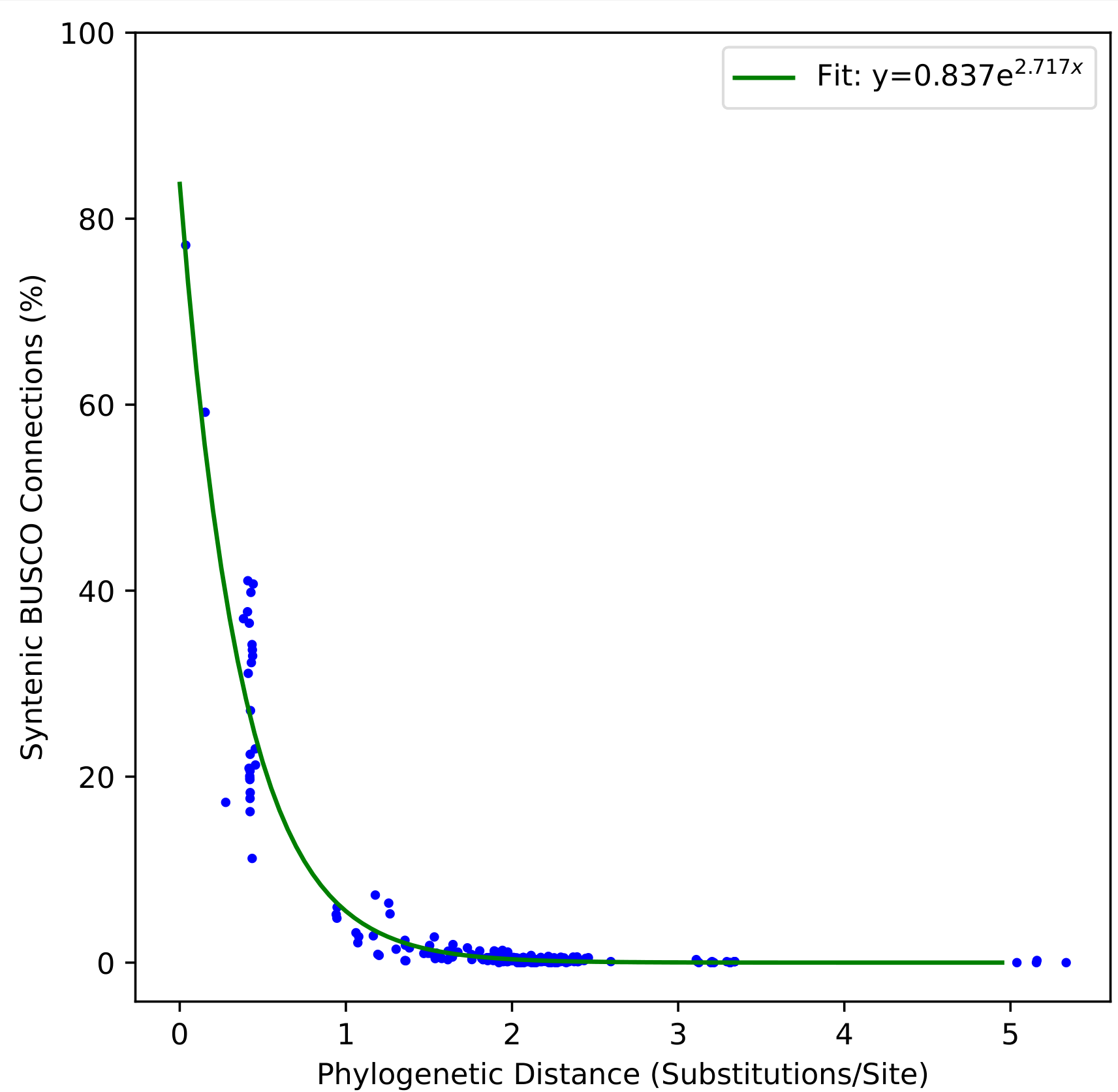 The above run will output BUSCO, CUSCO (Curated USCOs with higher precision) and MUSCO (remaining USCOs) statistics and graphs. It will compare the query to chromosome level genome assemblies from NCBI genome and output a table with a measure of synteny against each genome. It will output a Neighbor-Joining tree based on BUSCO synteny. Finally, it will place the assembly on a large precomputed phylogeny for the lineage and graph the observed decay in BUSCO synteny against inferred phylogenetic distance.
