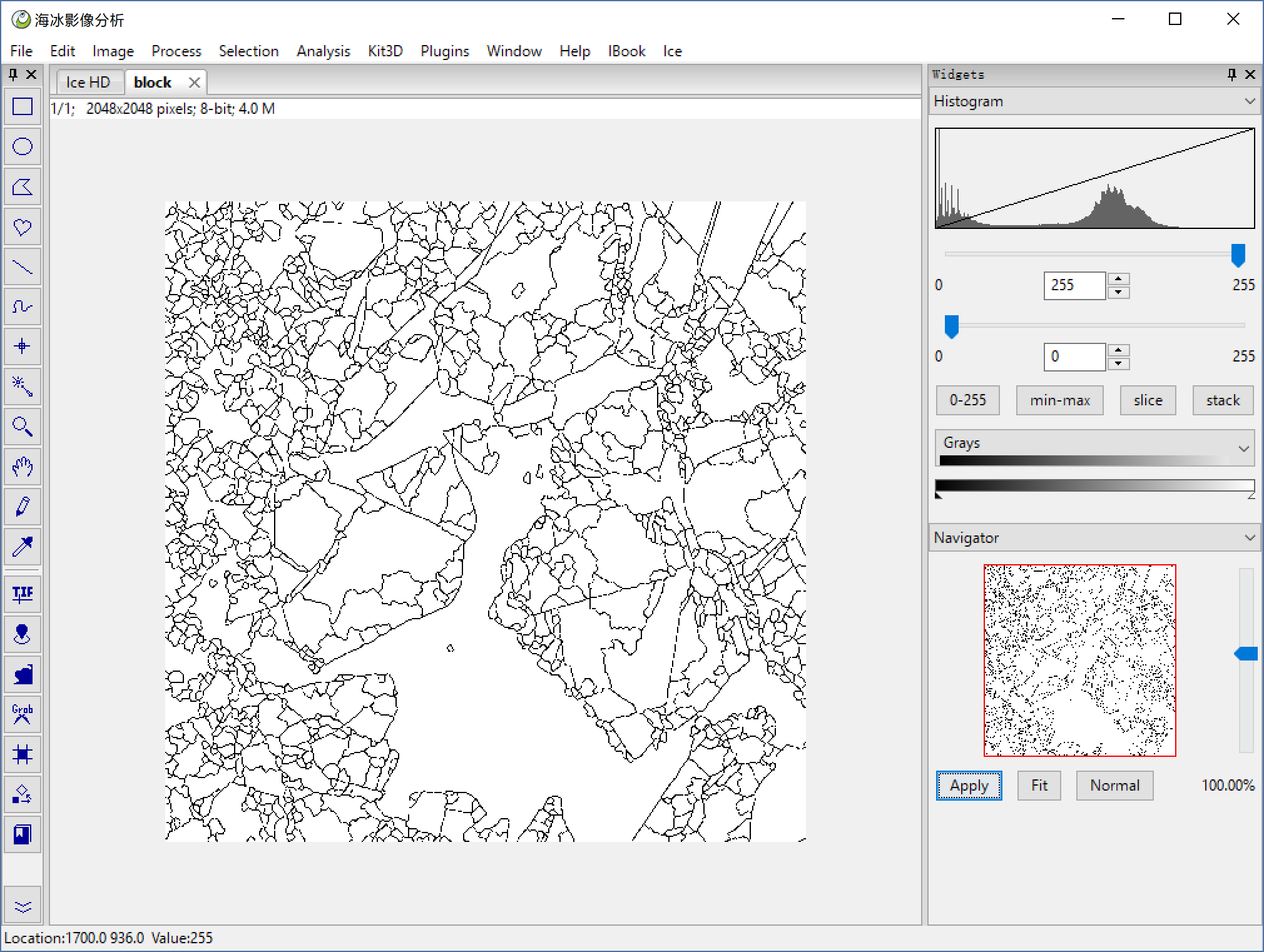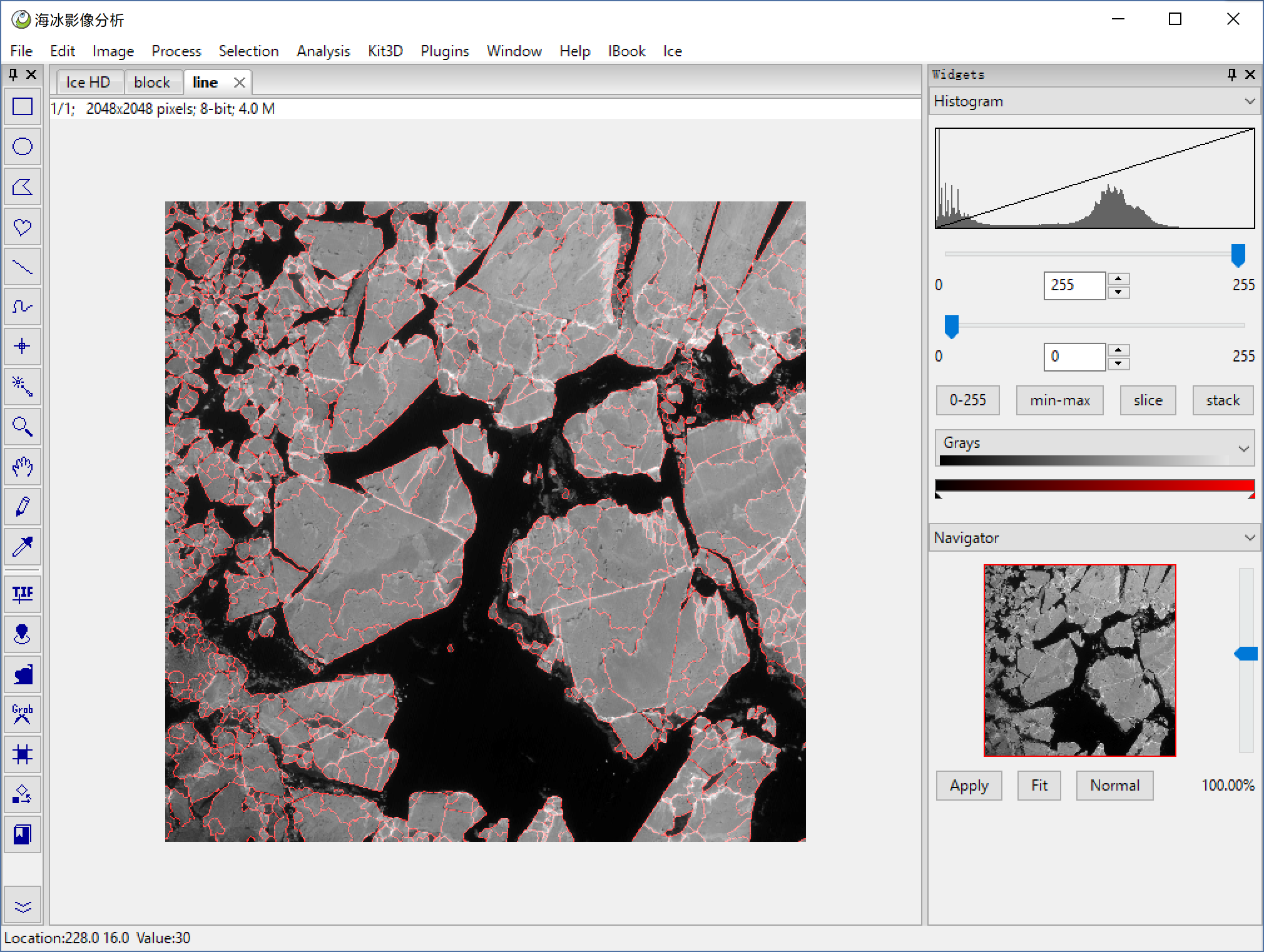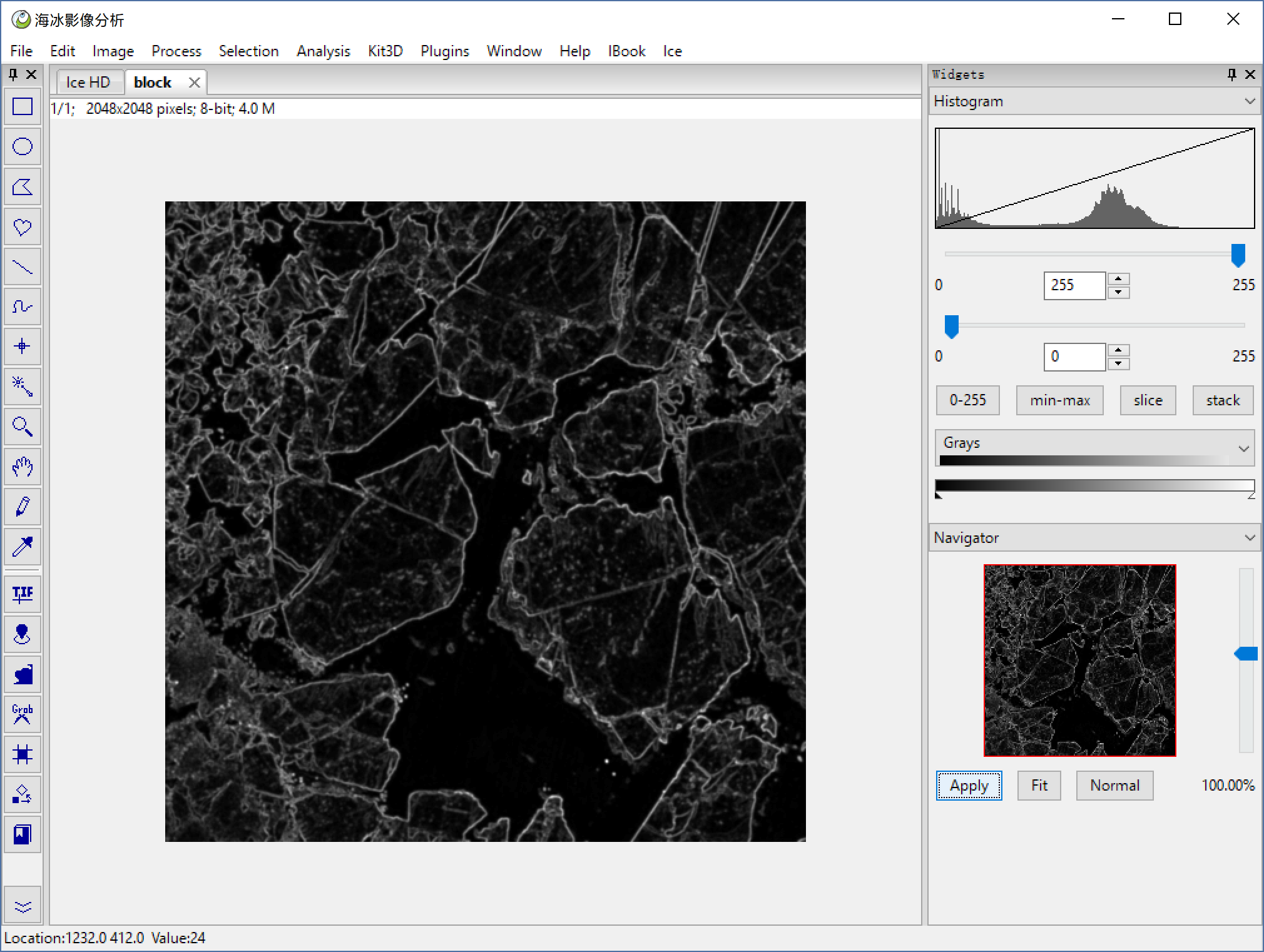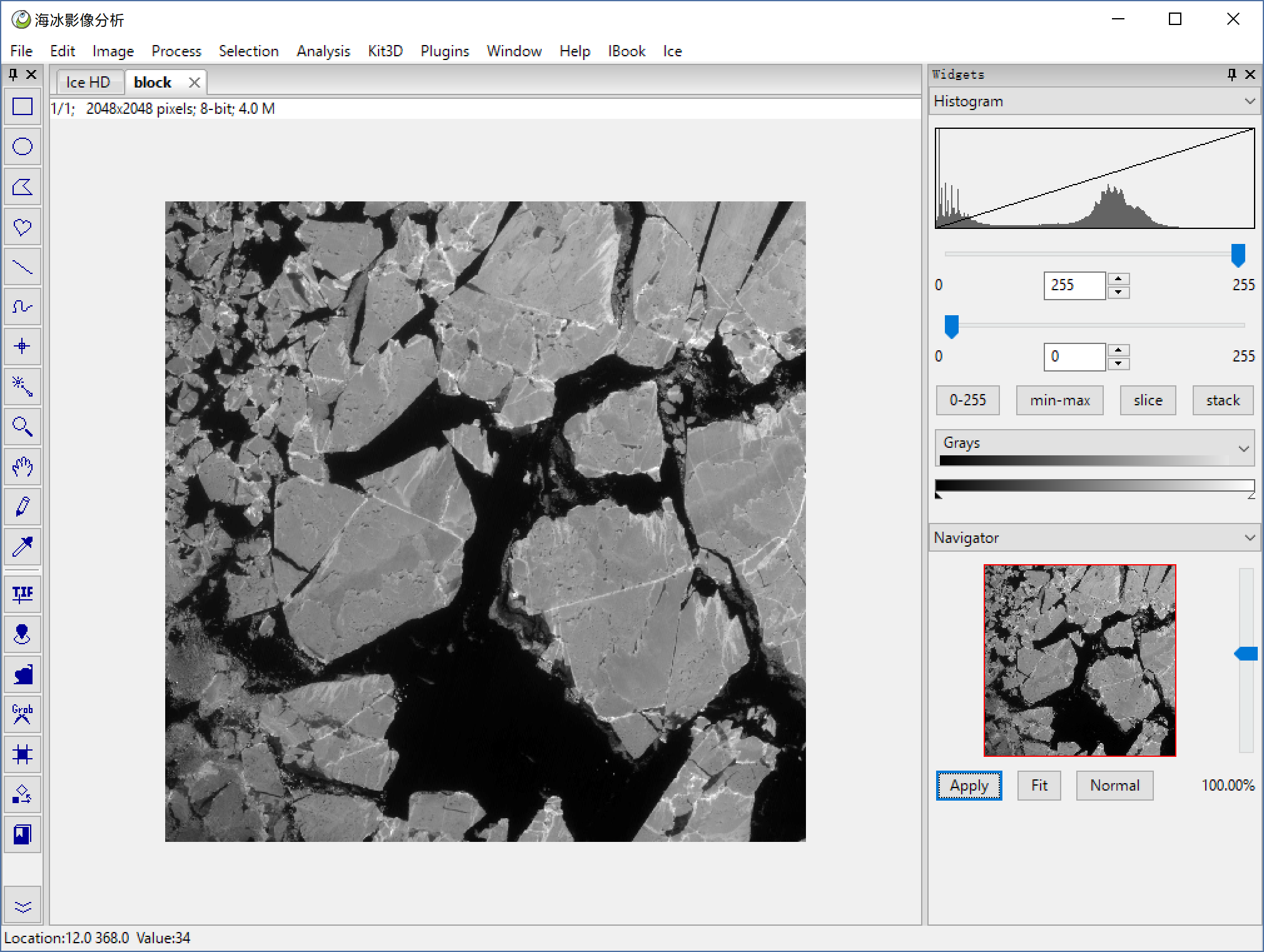 File > Open to open a HD sea ice image, or you can use Ice > HD Ice Image to open our demo image below.