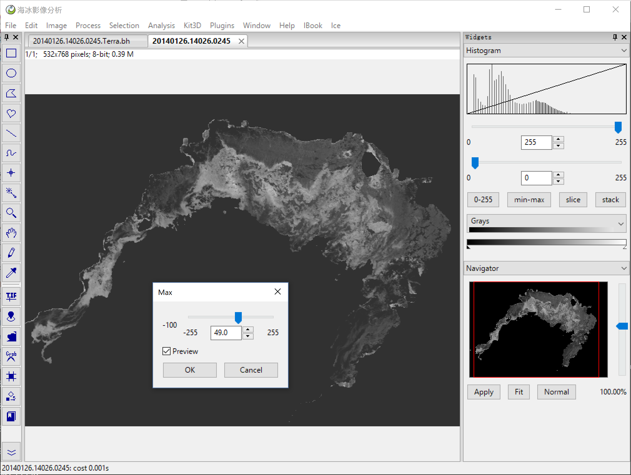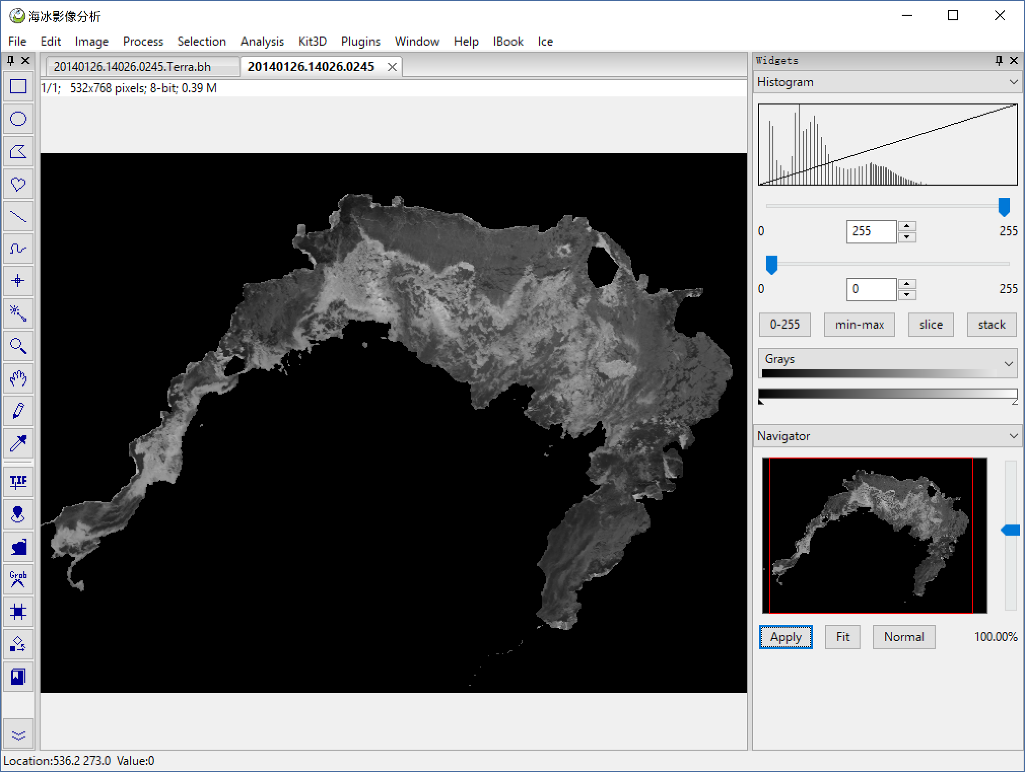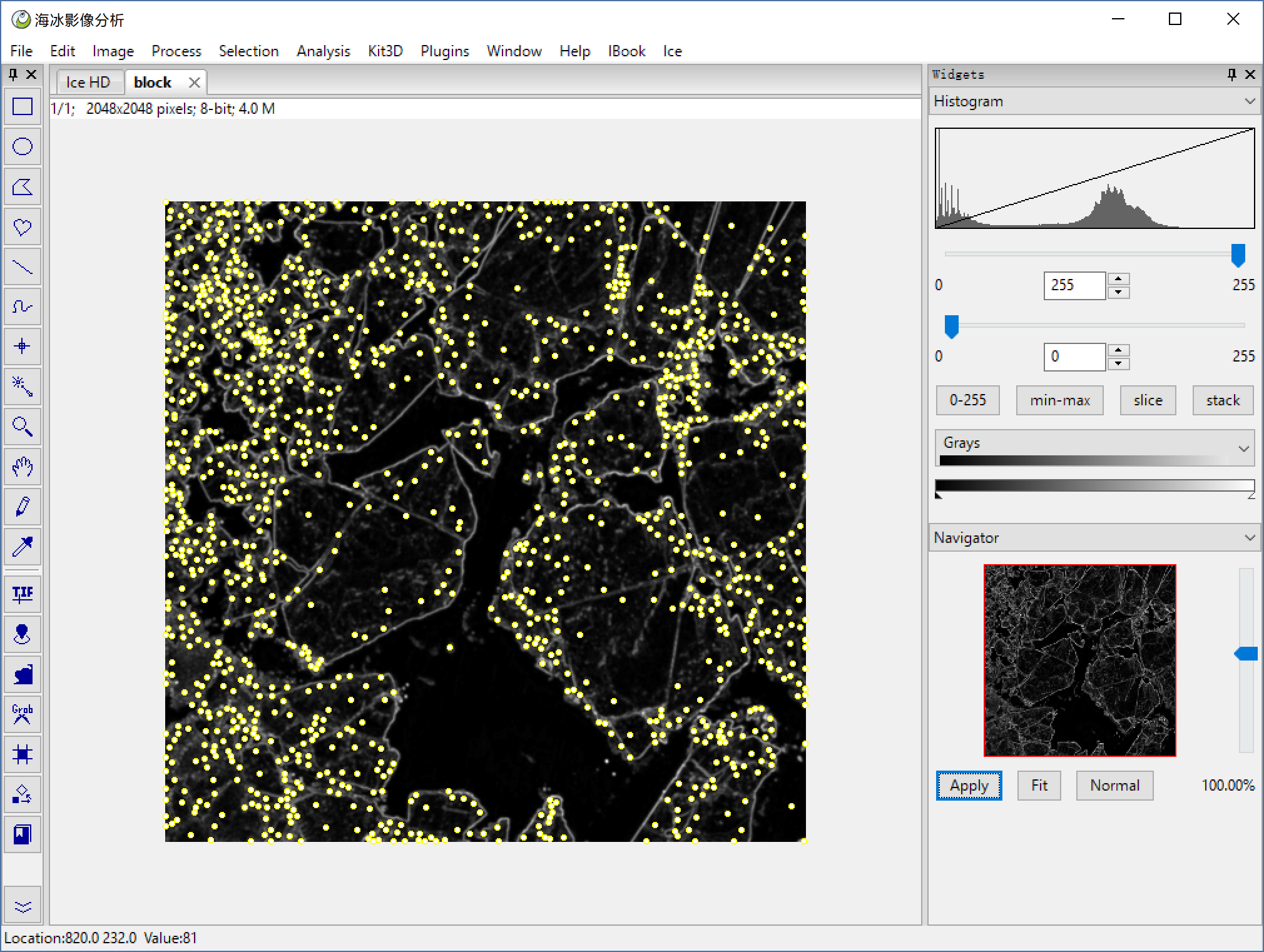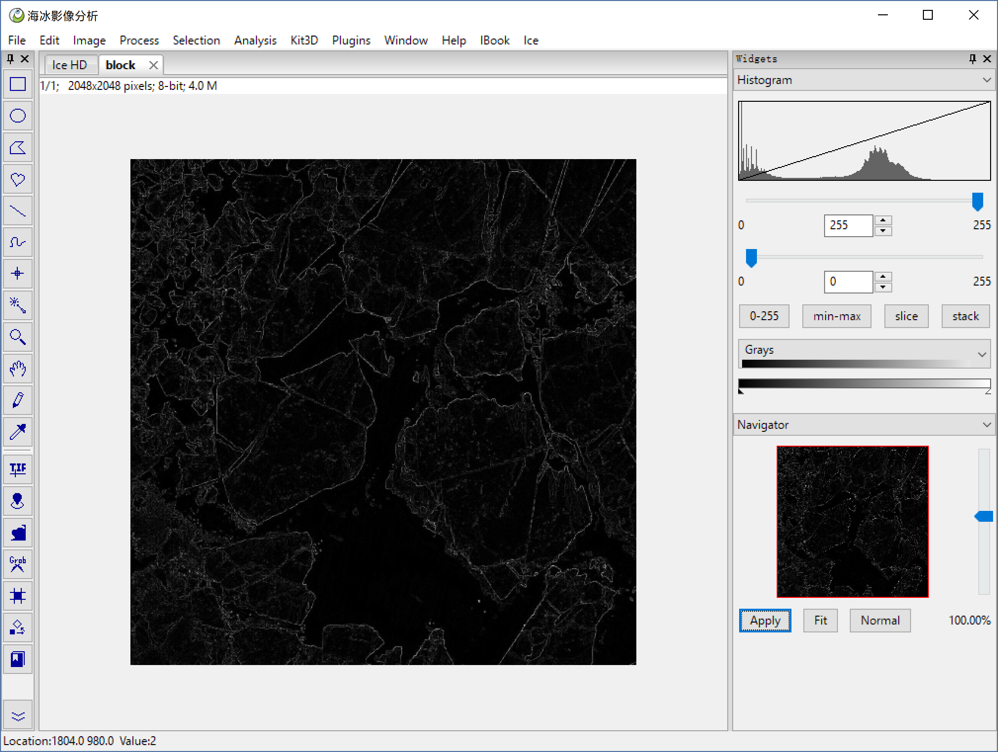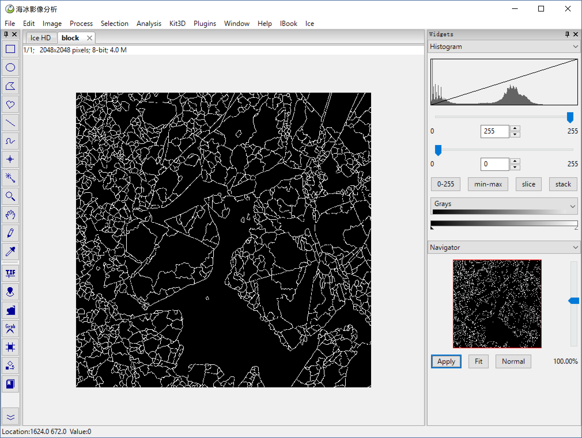 File > Open to open a HD sea ice image, or you can use Ice > HD Ice Image to open our demo image below.