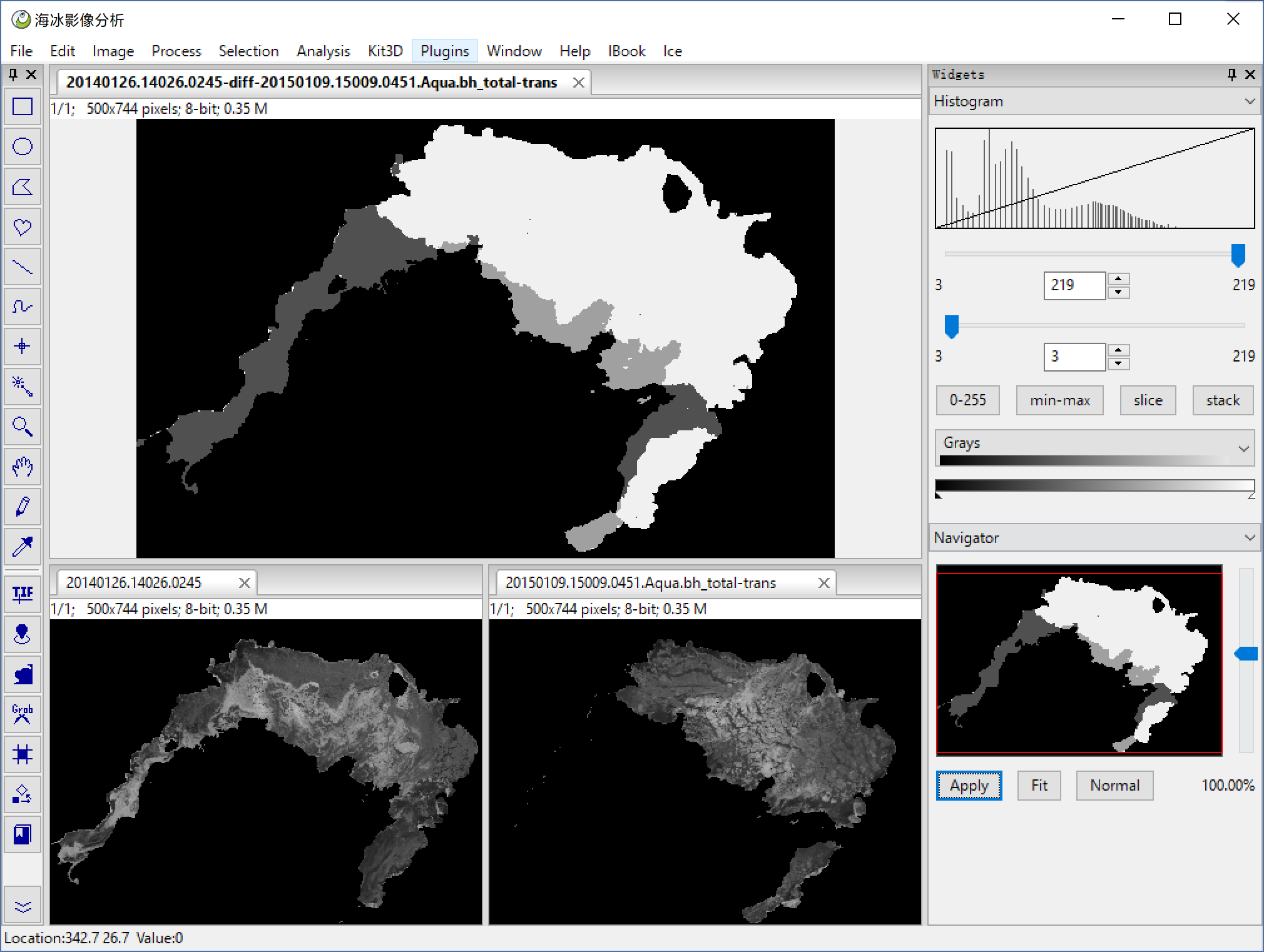 ImagePy is an image processing framework developed in Python. We can extend it with plugin esaily, This project is a toolkit developed for sea ice rs image processing. Please install ImagePy first, then use Plugins > Install > Install Plugins then input this project's git address. Enter, then ImagePy will install this toolkit automotely.(maybe the gdal lib will got some trouble, please use whl here)