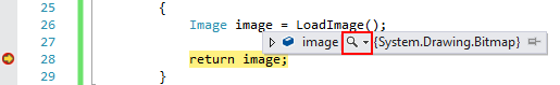 Image Visualizer allows you to preview image or bitmap variables while debugging in Visual Studio. You just need to hover any image or bitmap variable while debugging and press magnifier icon as shown below: