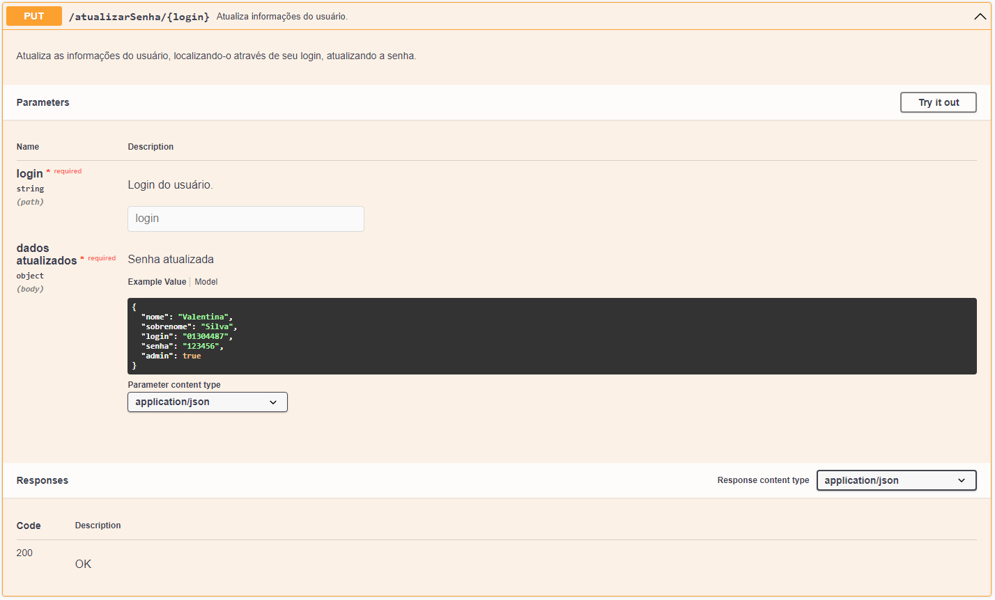 - Atualiza as informações de uma credencial. Localizando-a através de seu login e passando os dados a serem atualizados. Similar ao cadastro, porém precisando localizar a credencial.