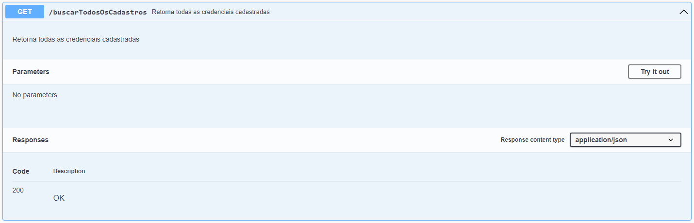 - Retorna todos as credenciais que estiverem cadastrados no banco de dados. Retorna um