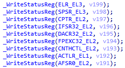 For MCR/MRC and MCRR/MRCC instructions on AArch32, and for MSR/MRS and SYS instructions on AArch64, the system register encoding is detected and replaced by its user-friendly name in the IDA View subview.