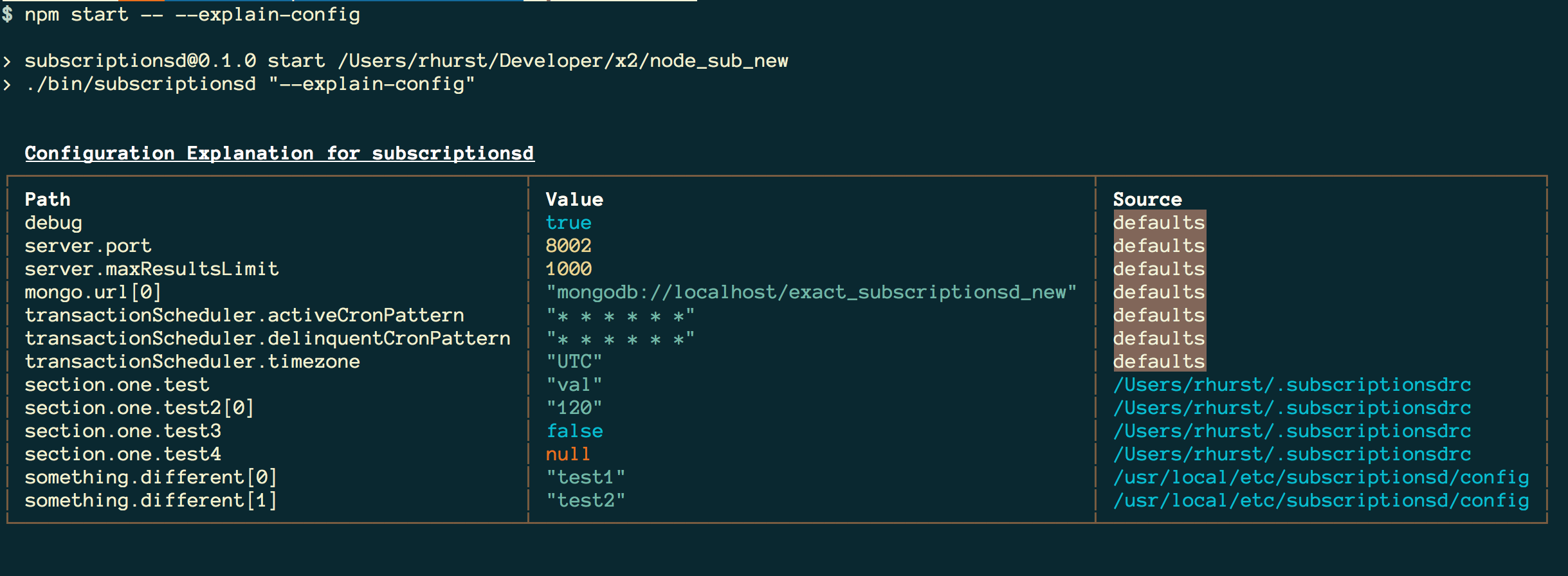 --test--my-key valbecomesconfig.test.myKey === 'val'in the config. Anything after -- is ignored. - environment variables - Ex.