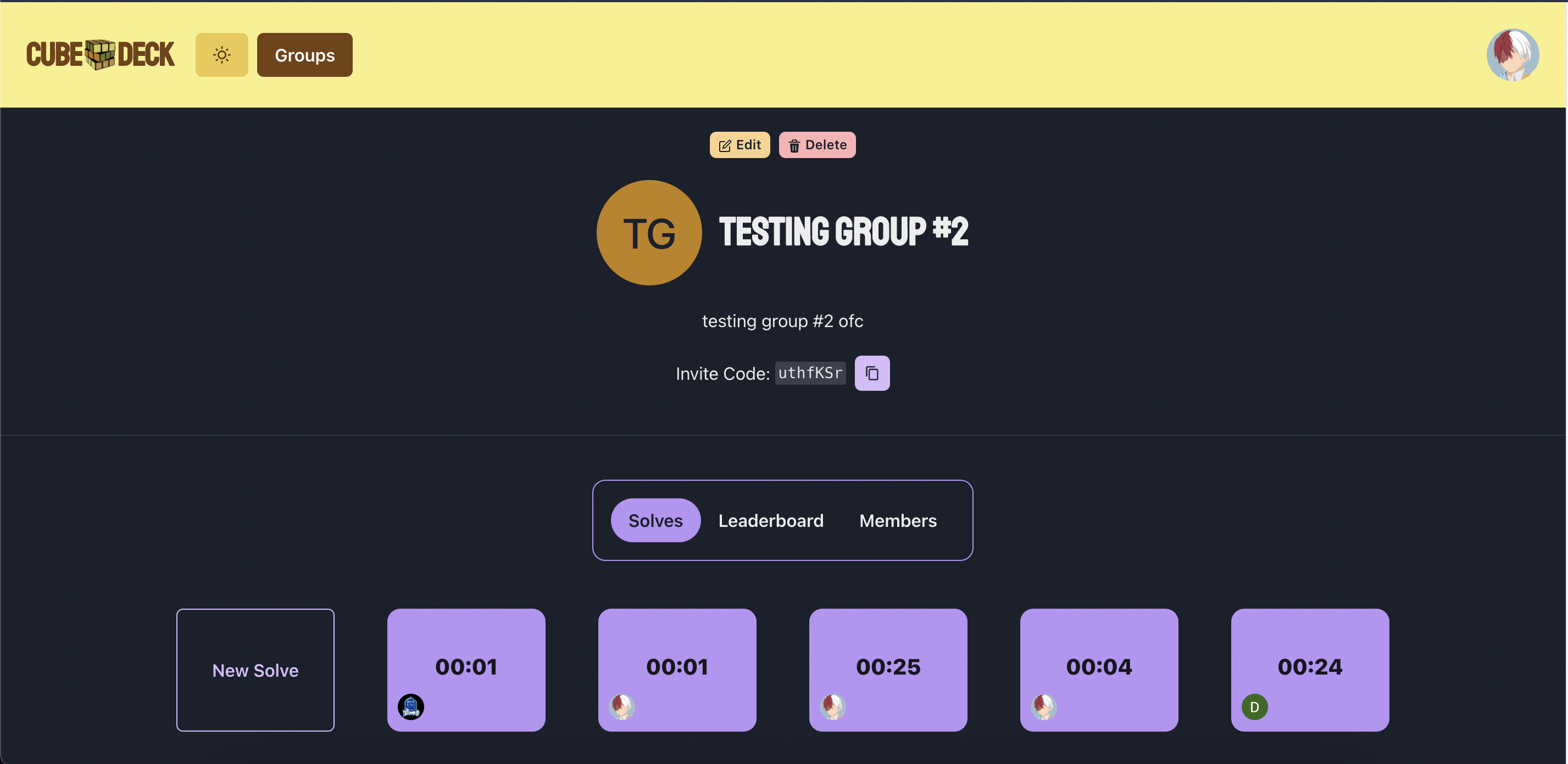 Cubedeck is a web application that is designed to assist cubers to keep track of their progress by and improve themselves by: