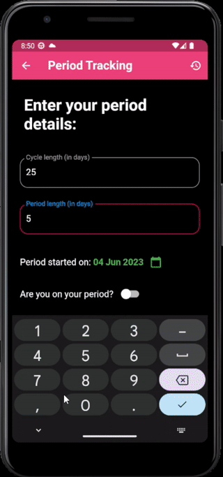 - Menstrual tracker feature with history of periods
