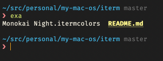 I am also using Monokai Night theme I made for iTerm. Here is how my prompt looks: