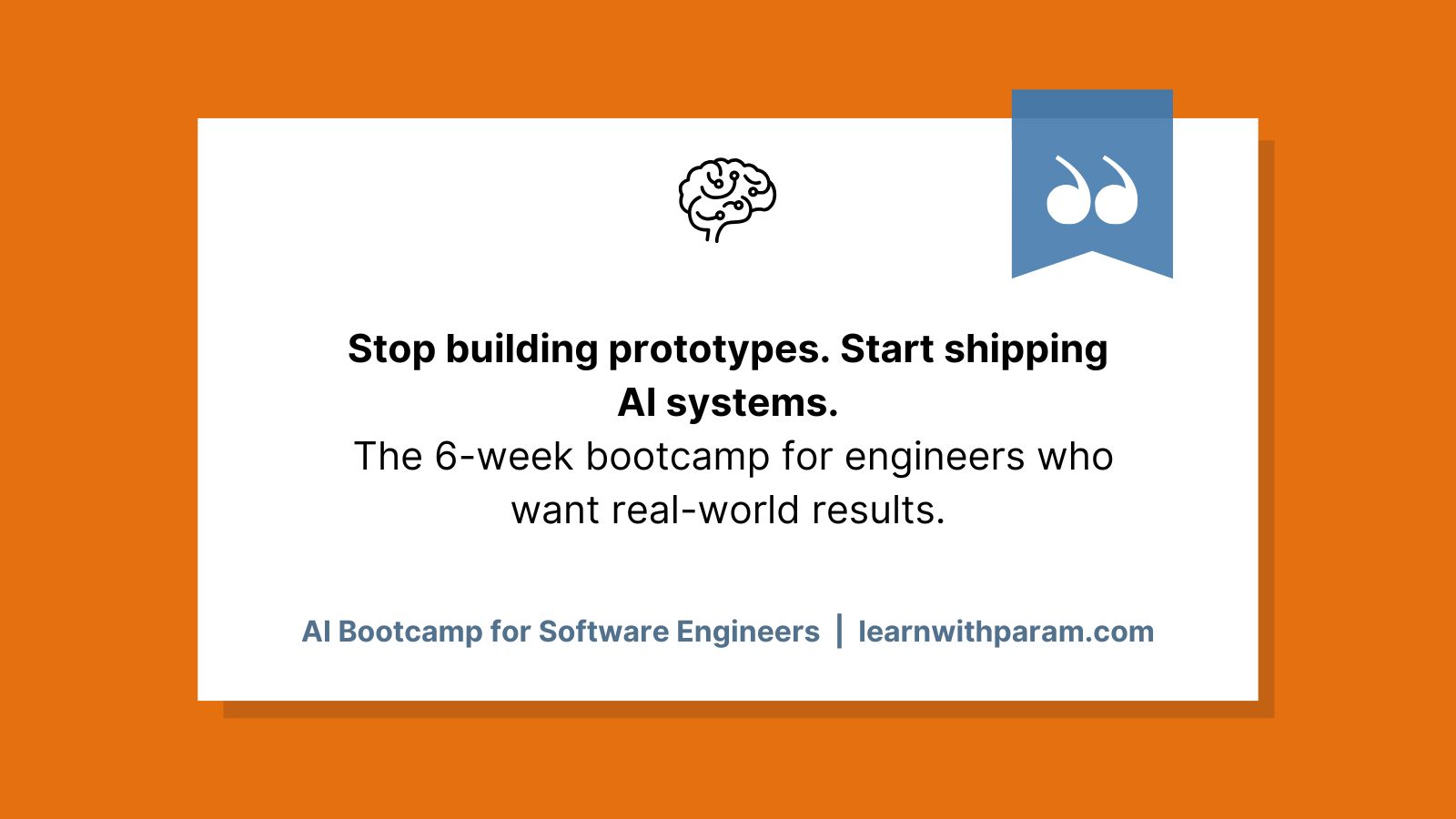 These patterns are just the foundation. To build production-ready AI systems that solve real business problems, join the AI Bootcamp for Software Engineers.