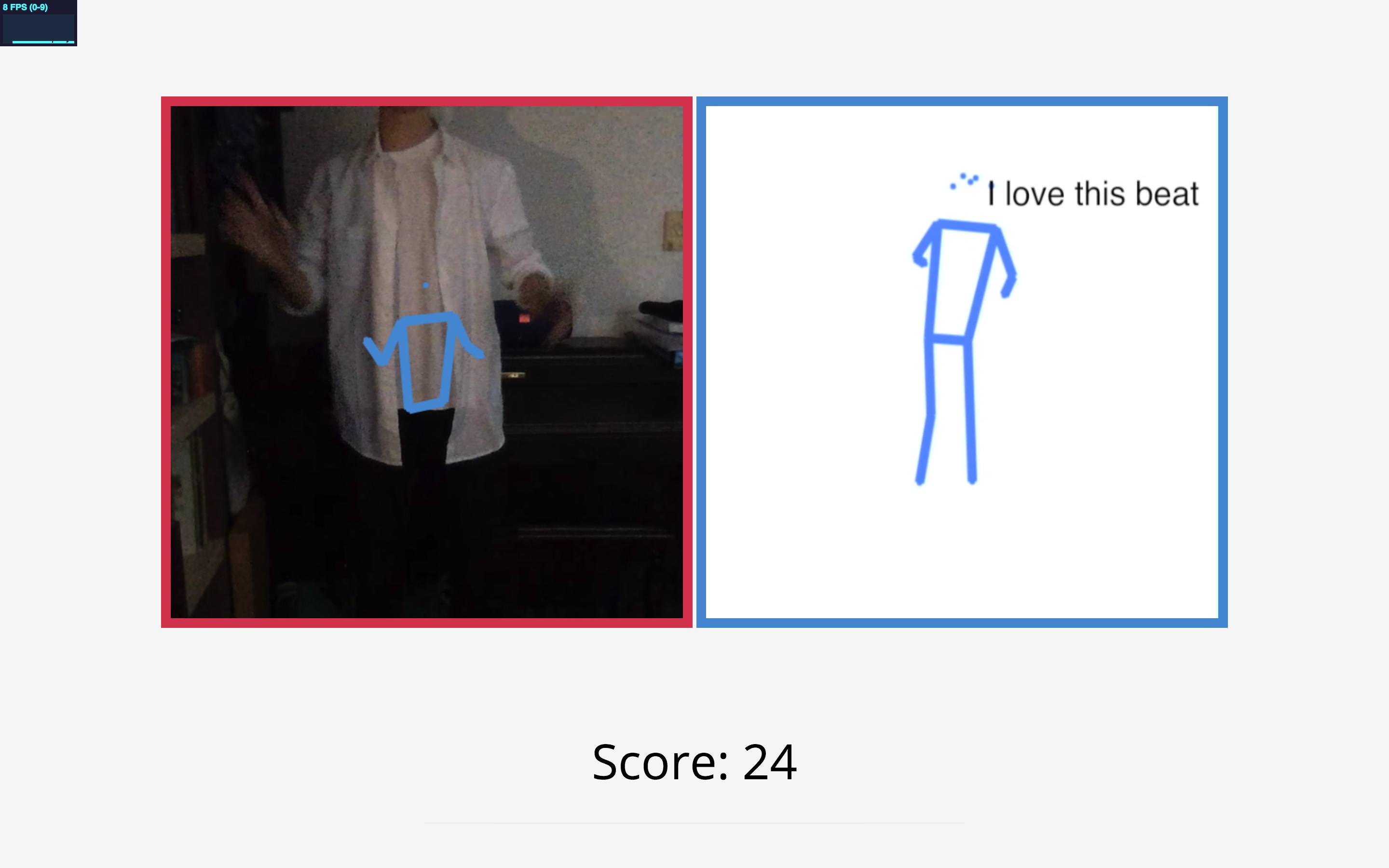 We began this project when we got inspired by this video of Siraj Raval, the well-known Youtuber who ambitiously educate deep learning to people. He also provided us with numerous feedbacks, leading to several critical improvements to our code. Here is his PoseNet code: https://github.com/llSourcell/InMyFeelings_Challenge