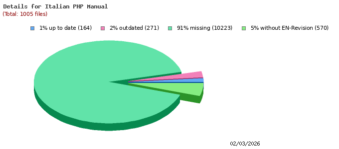 Traduzione italiana della documentazione PHP Attualmente la documentazione italiana è disponibile online. Stato attuale Contribuire Se desideri partecipare alla traduzione, consulta questa guida.