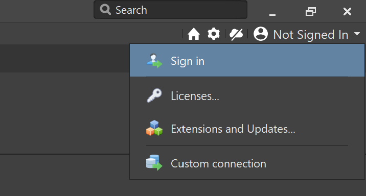 Before you can use Altium you must first sign into your account and check out one of the organization's seats. This can be done by clicking on the "Not Signed In" dropdown in the top right of the window and choosing "Sign in":