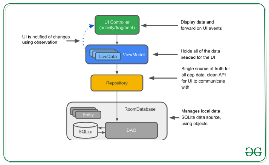LiveData is a part of the architecture patterns. It’s basically a data holder that contains primitive/collection types. It’s used for observing changes in the view and updating the view when it is ACTIVE. Thus, LiveData is lifecycle aware. We know that ViewModels are used to communicate the data to the View. Using ViewModels alone can be a tedious and costly operation since we need to make multiple calls each time the data has to alter the View. Plus we need to store the data Model at different places. LiveData is based on the Observer Pattern and makes the communication between the ViewModel and View easy. It observes for data changes and updates the data automatically instead of us doing multiple calls in adding and deleting data references from multiple places (for example SQLite, ArrayList, ViewModel).