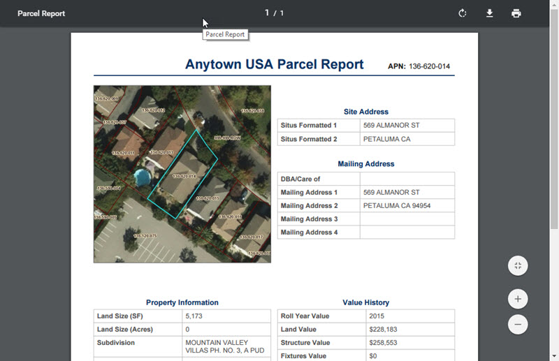 Highly configurable widget used to create a multi-page PDF report from a single feature or multiple features.